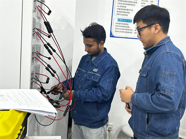 2023年12月25日,鄭州電力高等?茖W校境外辦學機構尼泊爾“中尼電力絲路學院”2021級電力系統(tǒng)自動化技術專業(yè)7名學生和3名教師抵達學校開展為期10天的專業(yè)技能實習培訓。電力工程學院為此次培訓做出精心組織和安排,根據課程計劃對“中尼電力絲路學院”師生開展了“典型客戶配電實訓、光伏電站運維實訓、智能變電站運維實訓、輸配電線路運維實訓”四門核心課程的實習培訓。通過此次實習培訓學生對已學專業(yè)課程涉及的技能進行了實踐,實踐使學生身臨其境,置身于工作環(huán)境,將所學理論知識運用到工作崗位中,為進一步提高職業(yè)崗位能力奠定了基礎。