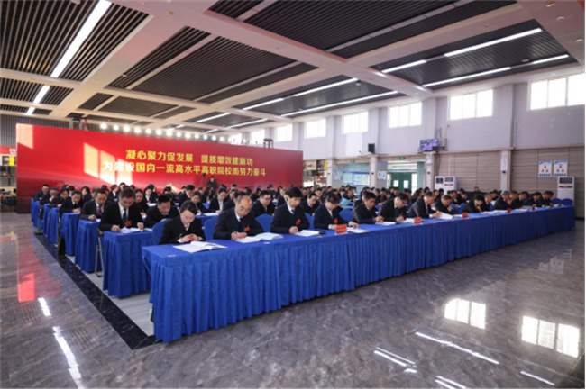 報告指出,要清醒地認識到在新起點上學校發(fā)展面臨的形勢任務,把“五個顯著提升”發(fā)展目標放在突出位置抓實抓牢,強化“標桿”“旗幟”意識,努力開拓學校高質(zhì)量發(fā)展新局面,堅定邁向國內(nèi)一流高水平高職院校前列。一是黨建工作質(zhì)量顯著提升;二是人才培養(yǎng)質(zhì)量顯著提升;三是教師隊伍素質(zhì)顯著提升;四是服務社會能力顯著提升;五是社會影響力顯著提升。
