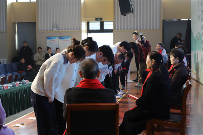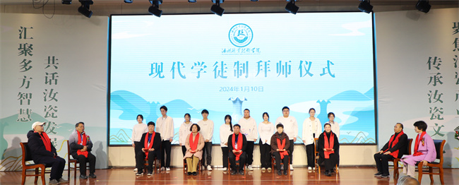 隨后舉行現(xiàn)代學(xué)徒制拜師儀式。趙俊璞宣讀參加現(xiàn)代學(xué)徒制拜師儀式師徒結(jié)對(duì)名單。在李廷懷、劉志鈞和汝州職業(yè)技術(shù)學(xué)院黨委副書記裴亞正、副院長(zhǎng)張亞婷共同見(jiàn)證下,來(lái)自汝州市和寶豐縣的汝瓷大師楊云超、劉軍立、李曉涓、王振芳、張玉鳳、胡忠成、王振峰、韓琴、王國(guó)奇、胡延芳,分別收到兩名學(xué)生奉上的拜師帖,然后,學(xué)生向師父行三鞠躬大禮。