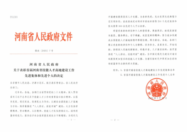 本次表彰是河南省人民政府對(duì)河南省技能人才高地建設(shè)工作先進(jìn)集體和先進(jìn)個(gè)人進(jìn)行的首屆表彰。鄭州電力高等?茖W(xué)校認(rèn)真貫徹落實(shí)河南省委省政府關(guān)于高質(zhì)量推進(jìn)“人人持證、技能河南”建設(shè)動(dòng)員部署,不斷優(yōu)化完善技能人才評(píng)價(jià)工作流程,完善職業(yè)技能等級(jí)評(píng)價(jià)管理制度和職業(yè)(工種)工作方案,在機(jī)構(gòu)建設(shè)、評(píng)價(jià)實(shí)施、質(zhì)量管控、高技能人才培養(yǎng)等方面成效顯著。