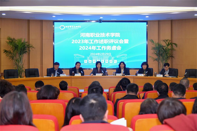 中新河南網(wǎng)3月2日電(趙宇輝) 2月29日,河南職業(yè)技術(shù)學(xué)院召開(kāi)2023年工作述職評(píng)議會(huì)暨2024年工作務(wù)虛會(huì)。會(huì)議聽(tīng)取了學(xué)校各部門主要負(fù)責(zé)同志的述職匯報(bào),總結(jié)了2023年度的工作,并對(duì)2024年度工作進(jìn)行了安排部署。學(xué)校領(lǐng)導(dǎo)班子成員、全體中層副職以上干部參加會(huì)議。會(huì)議由黨委副書記、紀(jì)委書記田華主持。