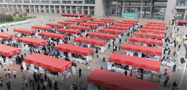 中新河南網(wǎng)3月23日電(趙云 郭寅虎 陸雪嫻) 3月22日,河南中醫(yī)藥大學2024年畢業(yè)生春季校園雙選會在學校龍子湖校區(qū)五星廣場順利舉行。校長王耀獻、校黨委委員、副校長田力出席雙選會現(xiàn)場,詳細了解招聘會的組織情況并與用人單位、畢業(yè)生進行了親切交流。學校相關(guān)職能部門及各學院、書院負責人、輔導員全程參與,5000余名畢業(yè)生參加了雙選會。