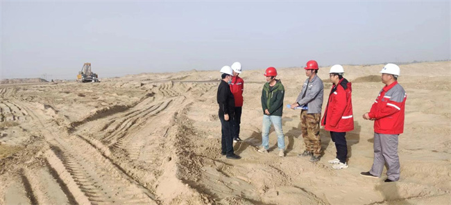 與業(yè)主、監(jiān)理、設(shè)計方對沉沙調(diào)節(jié)池強夯基礎(chǔ)進行現(xiàn)場驗收