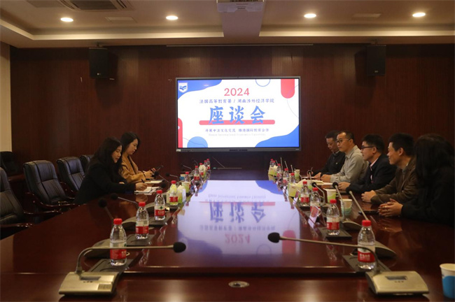 湖南涉外經(jīng)濟(jì)學(xué)院教務(wù)處處長(zhǎng)、國(guó)際合作與交流處處長(zhǎng)陳善敏,中法項(xiàng)目教學(xué)負(fù)責(zé)人賴(lài)劍,招生負(fù)責(zé)人鄭毅,法語(yǔ)外教Christiana Rebiere,以及國(guó)際教育學(xué)院部分成員參加了當(dāng)天的會(huì)見(jiàn)。