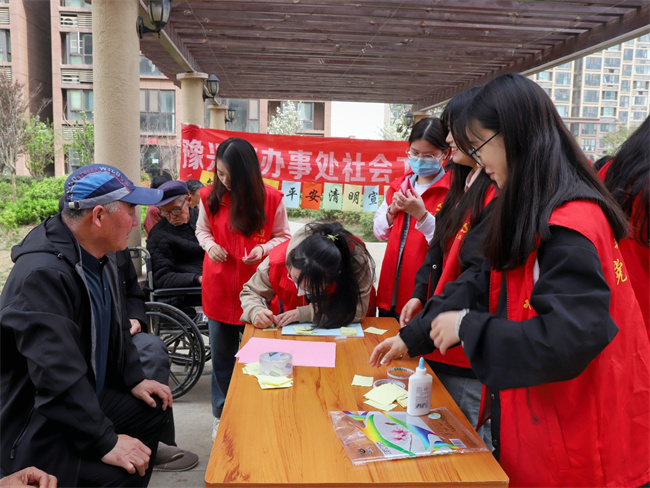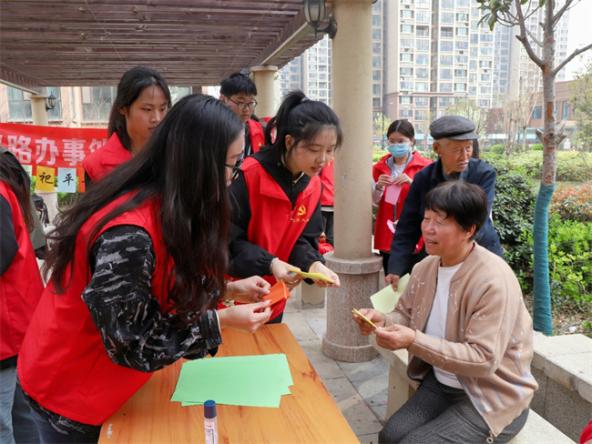 財(cái)稅學(xué)院學(xué)生第九黨支部成員帶領(lǐng)社區(qū)居民一起制作折紙工藝品