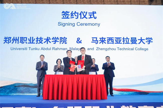 鄭州職業(yè)技術(shù)學(xué)院副校長王少華與馬來西亞拉曼大學(xué)副校長鍾志強(qiáng)進(jìn)行戰(zhàn)略合作簽約