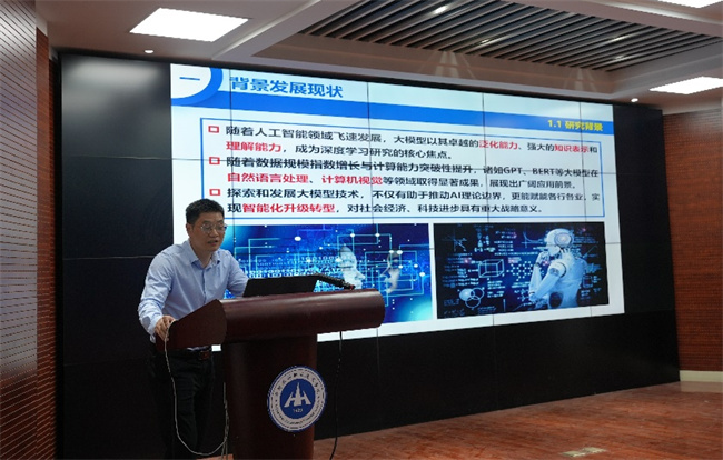閆超德教授做《人工智能在地理信息領(lǐng)域的應(yīng)用與實(shí)踐》專題報(bào)告,朱軍龍教授做《大模型技術(shù)及其醫(yī)療領(lǐng)域應(yīng)用》專題報(bào)告,李肖鋒教授做《高職院校專業(yè)升級(jí)與數(shù)字化改造》專題報(bào)告,他們分別分享了人工智能在各自專業(yè)領(lǐng)域的應(yīng)用和實(shí)踐情況,并展示了研究團(tuán)隊(duì)近年來所取得的研究成果。李響分享了當(dāng)前應(yīng)用較為廣泛的ChatGLM、Baichuan和WUDAO Aquila等人工智能大模型,并展示了學(xué)校職業(yè)教育人工大模型的設(shè)計(jì)和構(gòu)想。他表示,學(xué)校國(guó)家智能社會(huì)治理實(shí)驗(yàn)基地將全力支持大家開展專業(yè)領(lǐng)域或交叉學(xué)科領(lǐng)域人工智能方面的研究和實(shí)踐,為大家在數(shù)據(jù)分析計(jì)算、模型訓(xùn)練、教學(xué)資源制作、科學(xué)研究、技術(shù)服務(wù)等方面提供技術(shù)和平臺(tái)保障。耿會(huì)濤簡(jiǎn)要介紹了學(xué)校國(guó)家智能社會(huì)治理實(shí)驗(yàn)基地的基本情況和2024年工作計(jì)劃。