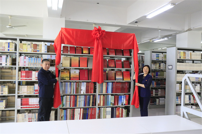 邱紅標(biāo)表示,市委黨史和地方史志研究室?guī)е鴮?duì)該院的關(guān)心和支持,慷慨捐贈(zèng)了平頂山市黨史文獻(xiàn)、志書(shū)、年鑒、地情書(shū)等紅色文獻(xiàn)共計(jì)二百余冊(cè)。這批書(shū)籍彌補(bǔ)了該院圖書(shū)館黨史文獻(xiàn)、志書(shū)藏書(shū)的不足,更為該院思政教育提供了豐富的紅色資源和地域文化資源,學(xué)院在圖書(shū)館二樓設(shè)立了“平頂山市黨史方志紅書(shū)架”。希望廣大青年學(xué)生主動(dòng)走近“紅書(shū)架”,了解黨的奮斗歷史,體悟先烈革命精神,不忘愛(ài)國(guó)心,再立報(bào)國(guó)志,努力把自己打造成為德、智、體、美、勞全面發(fā)展的時(shí)代新人;希望廣大教師從書(shū)中不斷凝練紅色精髓,深入挖掘育人元素,適時(shí)靈活的在課堂上用紅色人物激勵(lì)人、用紅色故事觸動(dòng)人、用紅色歷史啟迪人,推動(dòng)紅色文化育人育心,有效落實(shí)立德樹(shù)人根本任務(wù);希望廣大黨員干部自覺(jué)增強(qiáng)閱讀意識(shí),深刻領(lǐng)悟書(shū)中的精髓要義,結(jié)合黨紀(jì)、黨史學(xué)習(xí),講好鷹城故事,賡續(xù)紅色血脈,不斷拓展紅色文化的內(nèi)涵;更要把傳承紅色基因作為推動(dòng)黨的事業(yè)薪火相傳的重要手段,主動(dòng)擔(dān)當(dāng)、積極作為,帶領(lǐng)廣大師生員工為該院“雙高”創(chuàng)建工作貢獻(xiàn)力量。
