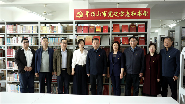 隨后,與會(huì)領(lǐng)導(dǎo)共同為圖書(shū)館二樓“平頂山市黨史方志紅書(shū)架”揭牌。