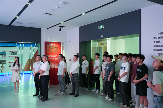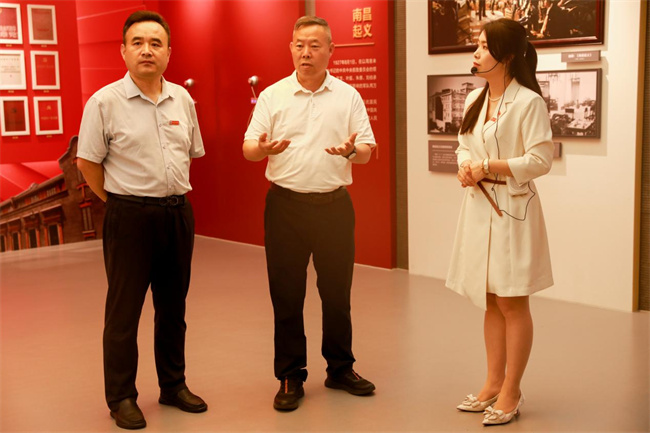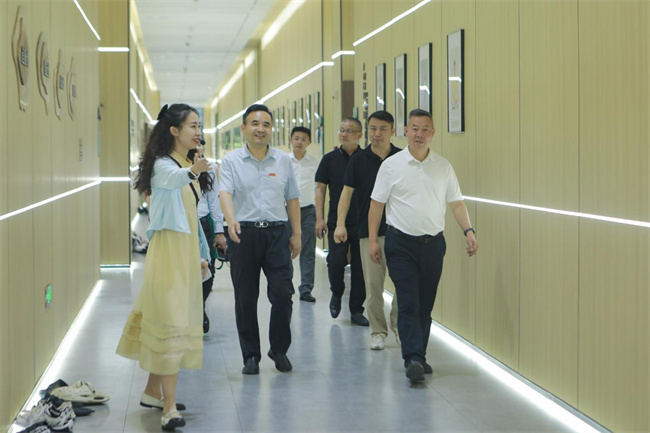 高揚(yáng)先一邊聽(tīng)著講解員莫非老師的介紹,一邊反復(fù)稱(chēng)贊學(xué)校在思政課建設(shè)付出的投入與努力,并為學(xué)校思政教師的專(zhuān)業(yè)點(diǎn)贊。“作為民辦學(xué)校,愿意投入資金建設(shè)這么好的思政館,真的非常不錯(cuò)。希望你們能夠發(fā)揮它的最大價(jià)值,利用好,引導(dǎo)學(xué)生走進(jìn)這個(gè)館,讓學(xué)生愛(ài)上這里,愛(ài)上黨史學(xué)習(xí)。”在講解的尾聲,突然間一群學(xué)生涌了進(jìn)來(lái),原來(lái)他們是要來(lái)這上思政課的學(xué)生。在得知高揚(yáng)先的身份后,學(xué)生們熱情邀請(qǐng)他進(jìn)課堂作分享。