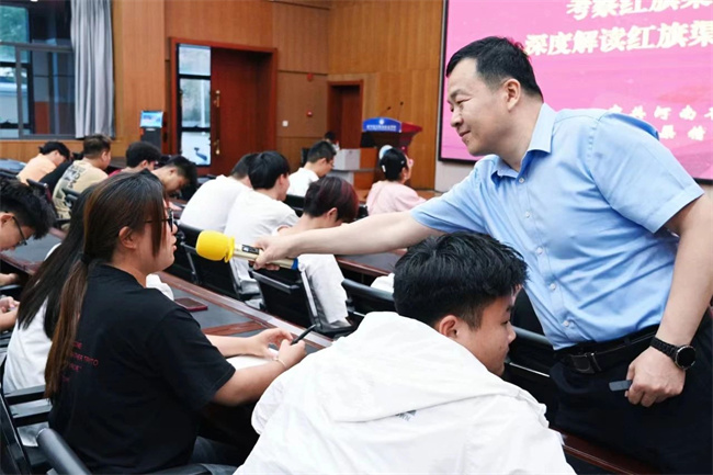 講座結(jié)束之后,靳海莉作了總結(jié)。紅旗渠精神是中華民族不可磨滅的歷史記憶,是對(duì)“社會(huì)主義是拼出來的、干出來的、拿命換來的”生動(dòng)注解。紅旗渠不僅僅是一條物理意義上的石砌水渠,更是一條寫滿了初心使命、承載著價(jià)值追求、凝結(jié)著勇氣智慧、蘊(yùn)含著創(chuàng)新創(chuàng)造、流淌著奮斗氣質(zhì)的精神豐碑。希望有幸在現(xiàn)場(chǎng)聆聽的同學(xué)們能夠以紅旗渠精神為指引,在今后的學(xué)習(xí)和生活中,傳承紅色基因,自強(qiáng)不息、不畏艱難,將紅旗渠精神熔鑄于生活中,做“能吃苦、肯奮斗、有理想、敢擔(dān)當(dāng)”的新時(shí)代青年,奮力書寫為中國(guó)式現(xiàn)代化挺膺擔(dān)當(dāng)?shù)那啻浩?(林州建筑職業(yè)技術(shù)學(xué)院供稿)