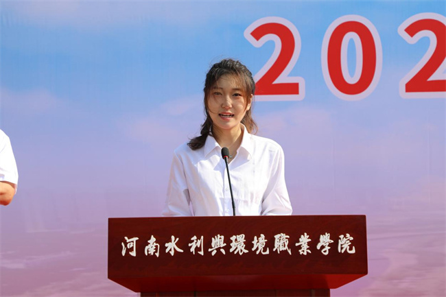 學(xué)生代表環(huán)境工程系2022級(jí)環(huán)境檢測(cè)技術(shù)專業(yè)學(xué)生劉甜娜發(fā)言