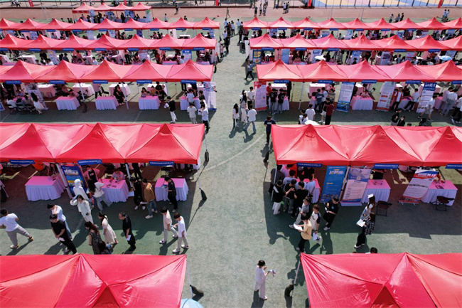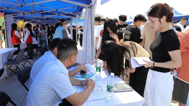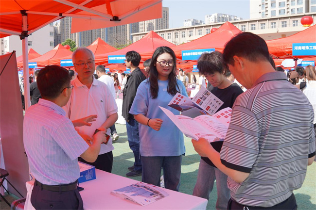雙選會(huì)采取“線下和線上結(jié)合、就業(yè)與實(shí)習(xí)結(jié)合”的方式開展,會(huì)場(chǎng)設(shè)置參會(huì)企業(yè)二維碼墻,學(xué)生可以“碼上”參會(huì),未能現(xiàn)場(chǎng)參會(huì)的畢業(yè)生也可以通過線上參與,查看用人單位簡(jiǎn)介、職位崗位信息并投遞簡(jiǎn)歷。雙選會(huì)現(xiàn)場(chǎng)人潮涌動(dòng),氣氛活躍,約12000名求職學(xué)生帶著自己精心準(zhǔn)備的簡(jiǎn)歷積極與企業(yè)招聘人員交流,應(yīng)聘就業(yè)崗位。學(xué)校還為企業(yè)方準(zhǔn)備了專場(chǎng)招聘會(huì)宣講會(huì)場(chǎng),方便企業(yè)和學(xué)生進(jìn)一步溝通交流。鄭州市金水區(qū)人力資源與社會(huì)保障局在學(xué)校設(shè)立了政策咨詢服務(wù)臺(tái),為學(xué)生就業(yè)解疑答惑、提供幫助。