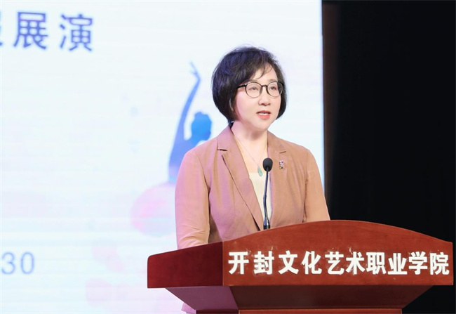 沈潔霞致歡迎詞,她指出,開封文化藝術(shù)職業(yè)學(xué)院始終扛牢“為黨育人為國育才”使命,致力于培養(yǎng)德智體美勞全面發(fā)展的社會(huì)主義建設(shè)者和接班人,人才培養(yǎng)、科學(xué)研究、文化傳承創(chuàng)新、社會(huì)服務(wù)、國際交流合作等各項(xiàng)事業(yè)全面進(jìn)步,佳績頻傳。五年制大專部具有比較鮮明的特色,近年來,五專部在專業(yè)教育等各項(xiàng)工作中,取得了顯著的成績。在全國職業(yè)院校高峰論壇的展演現(xiàn)場,在全國大學(xué)生藝術(shù)展演的舞臺上,在“河南省大科節(jié)”的賽場上,在連續(xù)幾屆“開封市運(yùn)動(dòng)會(huì)”的綠茵場上,在“中國開封菊花文化節(jié)”開幕式上,都活躍著五專部學(xué)生的身影,為提升開封文化藝術(shù)職業(yè)學(xué)院的知名度、美譽(yù)度、貢獻(xiàn)度做出了突出貢獻(xiàn)。