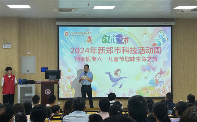 中新河南網(wǎng)6月6日電(許凌海)  聚焦強化科普服務(wù)能力、提升全民科學(xué)素養(yǎng),按照中共中央宣傳部、科技部、中國科協(xié)2024年全國科技活動周活動要求,在第74個國際“六一”兒童節(jié)即將到來之際,河南醫(yī)學(xué)高等?茖W(xué)校生命科學(xué)館、校工會在人體生命科學(xué)館組織開展以“弘揚科學(xué)家精神 激發(fā)全社會創(chuàng)新活力”為主題的新鄭市科技活動周。校黨委副書記、工會主席李鵬濤出席活動并講話,校關(guān)工委代表、教職工子女及龍湖鎮(zhèn)部分中小學(xué)生300余人參加活動。