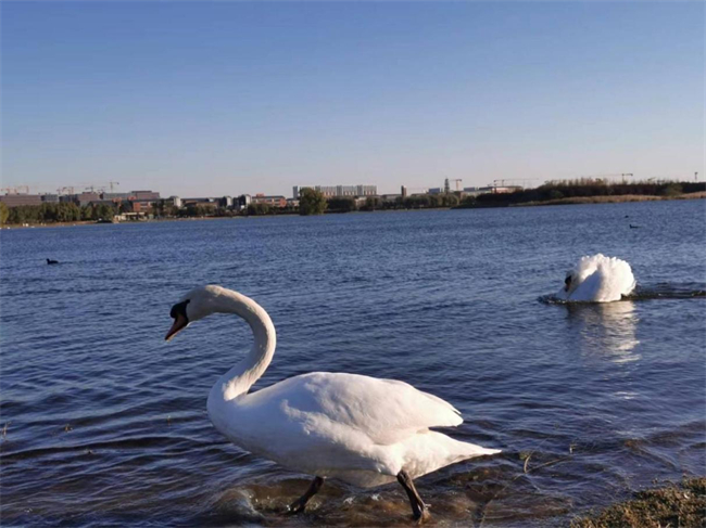 在尋找最美天鵝活動(dòng)中,師生來到北龍湖疣鼻天鵝觀賞區(qū),仔細(xì)觀察疣鼻天鵝的體貌特征和生活習(xí)性,感受野生天鵝的獨(dú)特魅力。同學(xué)們紛紛用相機(jī)記錄下天鵝的優(yōu)美姿態(tài),現(xiàn)場(chǎng)一派人與自然和諧共生的美好景象。