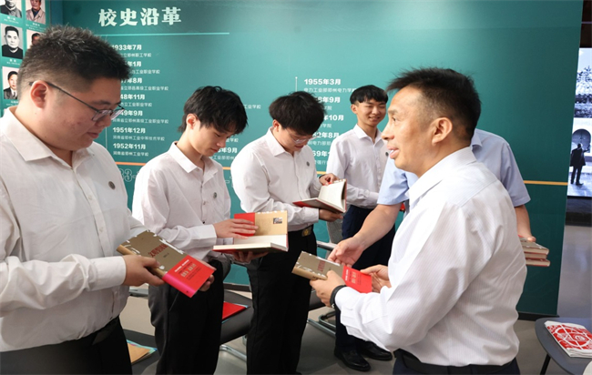 座談會(huì)后,校長劉全璽將張維為教授的《文明型國家》一書,現(xiàn)場贈(zèng)送給畢業(yè)生代表,希望同學(xué)們理解并傳承其中蘊(yùn)含的深厚文化底蘊(yùn)和歷史智慧,并將這種文明精神融入到未來的工作和生活中。畢業(yè)生代表也將精心準(zhǔn)備的代表3232名畢業(yè)生的;掌磮D作品回贈(zèng)母校,表達(dá)對(duì)母校的感恩之情。參會(huì)領(lǐng)導(dǎo)和老師與畢業(yè)生代表共同合影留念,祝福畢業(yè)生在未來的道路上乘風(fēng)破浪、再創(chuàng)輝煌!