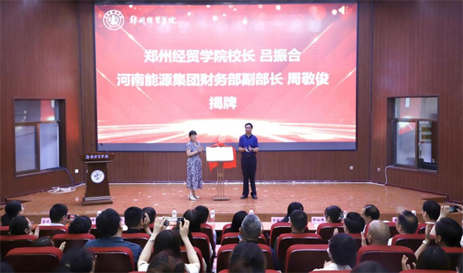 鄭州經(jīng)貿(mào)學(xué)院校長呂振合與河南能源集團(tuán)財(cái)務(wù)部副部長周敬俊共同為“會計(jì)事務(wù)行業(yè)學(xué)院”揭牌。這一時刻標(biāo)志著鄭州經(jīng)貿(mào)學(xué)院會計(jì)事務(wù)行業(yè)學(xué)院正式成立,也預(yù)示著學(xué)院將在未來的發(fā)展中迎來更加廣闊的空間和更加美好的前景。