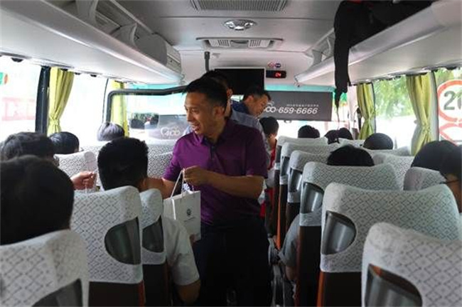 在“愛心專車”上,校長劉全璽與畢業(yè)生親切交流,溫情話別,為畢業(yè)生送上臨別禮物。劉校長祝賀同學(xué)們順利畢業(yè),囑托同學(xué)們常回來看看,鼓勵同學(xué)們在新的起點上踔厲奮發(fā)、篤行不怠,以最好的成績?yōu)槟感T龉馓聿,為國家和社會作出貢獻。