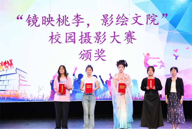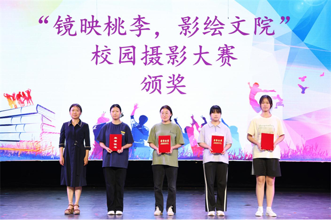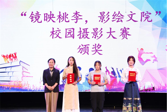 黨委委員、副校長(zhǎng)劉詠梅為校園攝影大賽一等獎(jiǎng)獲獎(jiǎng)選手頒獎(jiǎng)