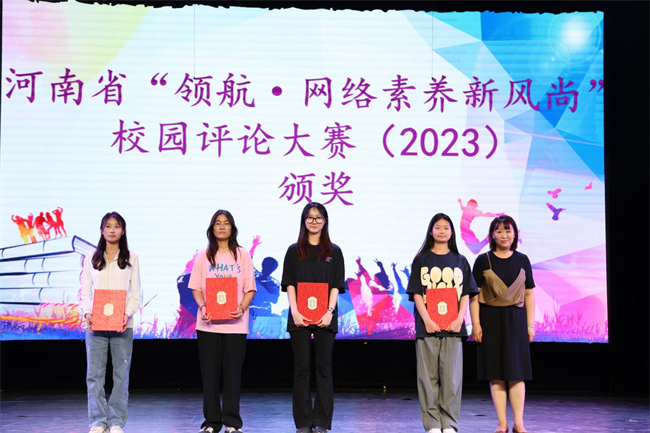 文化傳媒學(xué)院黨總支書記李任暉為河南省校園評(píng)論大賽獲獎(jiǎng)選手頒獎(jiǎng)