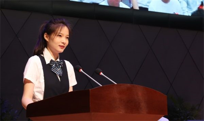 教師代表機(jī)電工程學(xué)院院長秦國防教授、畢業(yè)生代表教育藝術(shù)學(xué)院常榮躍在典禮上依次發(fā)言。