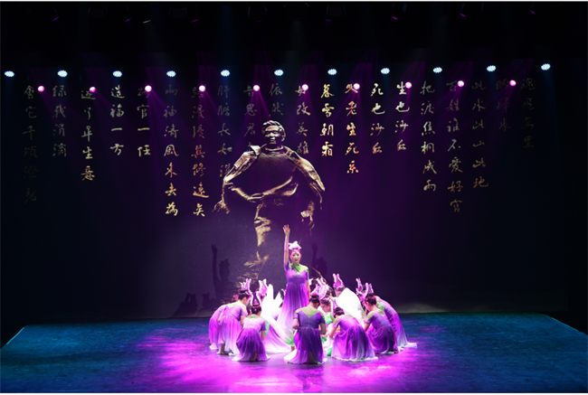 自著手打造該劇目以來,學校黨委高度重視,從最初的立意到后期的排練,從服化道的設計到舞美的審定,學校都給予人力物力財力的大力支持。黨委書記沈潔霞、校長何新等校領導多次親臨排練現(xiàn)場勉勵學生、查看排練進度并提出意見建議。參加排練演出的師生們,不怕苦不怕累,一遍又一遍,一天又一天,經(jīng)歷無數(shù)次的集訓,修改無數(shù)次的動作。訓練中不僅有汗水與傷痛,更有歡樂與感動。