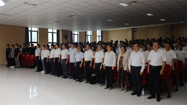 教師代表環(huán)境工程系主任張劍在發(fā)言中表示,希望同學(xué)們始終秉承校訓(xùn)、弘揚(yáng)校風(fēng),做到勤于學(xué)習(xí)、善于思考、強(qiáng)技成才,為中華民族偉大復(fù)興貢獻(xiàn)青春力量。