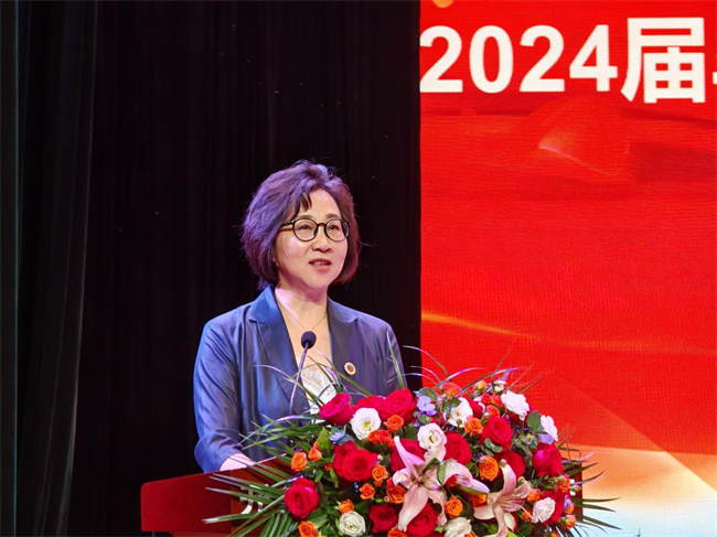 何新致辭,她指出,文職院一百余年的辦學歷程,就是求知、強技、奉獻、報國的生動縮影,學校累計為社會培養(yǎng)了數(shù)以十萬計的畢業(yè)生。她提出三點希望,一是希望同學們永葆一顆愛國心。“清澈的愛、只為中國”,奮力書寫為中國式現(xiàn)代化挺膺擔當?shù)那啻浩。立大志、行大道,將個人的理想追求融入黨和國家事業(yè)之中,以涓滴“小我”成就澎湃“大我”。二是希望同學們常存一腔青春志。“恰同學少年,風華正茂;書生意氣,揮斥方遒”,要保持著一份昂揚的青春朝氣、一種執(zhí)著的青春追求。作為有夢想有追求的青年,無論身處何方,從事何種職業(yè),都要保持熱愛、滿懷期待,始終對世界充滿探索欲,對人生保持好奇心,無論平坦大道還是荊棘叢生,都擁有從頭再來、一切歸零的勇氣和無畏風浪、不懼艱辛的從容。三是希望同學們傳承一種好精神。“偏毫厘不敢安,千萬錘成一器”,要發(fā)揚“執(zhí)著專注、精益求精、一絲不茍、追求卓越”的工匠精神,即使從事平凡的工作,也能創(chuàng)造不凡的社會價值;即使做一位平凡的人,也能書寫非凡的人生華章。要堅定“把每一項平凡工作做好就是不平凡”的恒心,保持“把每一件小事情做好就是大事業(yè)”的匠心,在各自崗位上踏踏實實、兢兢業(yè)業(yè),創(chuàng)造別樣精彩。