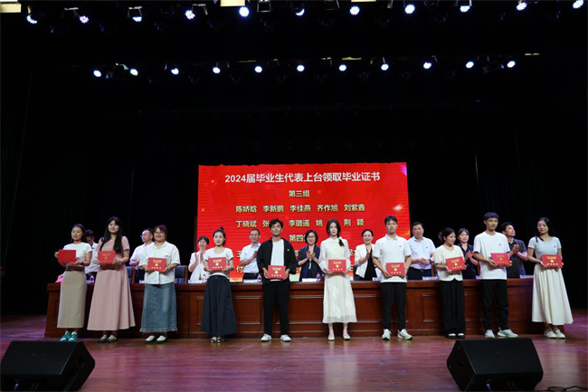 黨委委員、副校長孫利娟宣讀學!蛾P于公布2024屆畢業(yè)生畢業(yè)資格審查結果的通知》,5596名學生順利畢業(yè)。黨委委員、副校長張力宣讀學!蛾P于表彰2024屆優(yōu)秀畢業(yè)生的決定》,1112名學生受到表彰。
