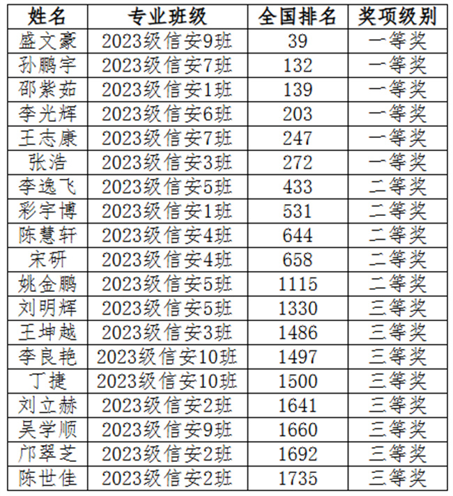 本屆賽事共設(shè)個人挑戰(zhàn)賽、分組對抗賽、無限擂臺賽和數(shù)據(jù)思維賽4個賽項。鄭州軟件職業(yè)技術(shù)學(xué)院學(xué)子參加了個人挑戰(zhàn)賽、無限擂臺賽兩個賽道,與13400余名全國本科、高職院校參賽選手同臺競技,在雙導(dǎo)師指導(dǎo)下,克服種種困難,團結(jié)一心,積極備賽,努力拼搏,斬獲30個獎項,其中2023級信息安全專業(yè)盛文豪同學(xué)表現(xiàn)優(yōu)異,個人挑戰(zhàn)賽和無線擂臺賽分別獲得全國第39、43名,兩個賽道在河南高職院校所有參賽選手中均排名第1,賽出了鄭軟學(xué)子的風(fēng)采!