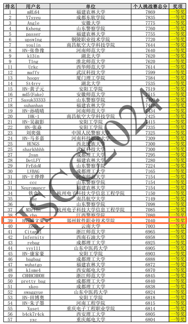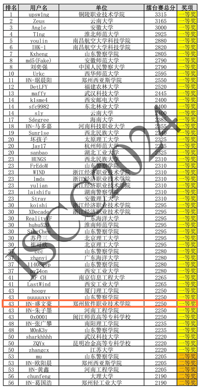 ISCC2024個人挑戰(zhàn)賽獲獎名單