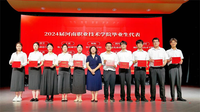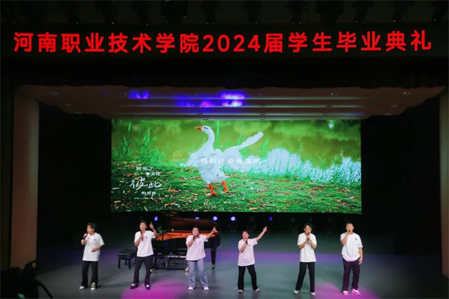 隨后,與會(huì)師生一同觀看了歡送畢業(yè)生的文藝匯演。教師代表演唱的歌曲《送別》、學(xué)生代表領(lǐng)唱的《再見》和《河南職業(yè)技術(shù)學(xué)院之歌》喚起了畢業(yè)生們對(duì)美好校園生活的懷念和不舍;健康操《點(diǎn)亮未來(lái)》、舞蹈《銀杏》展現(xiàn)了河職學(xué)子的青春活力與美好追求。典禮在齊聲誦讀毛澤東詩(shī)詞《憶秦娥·婁山關(guān)》和全場(chǎng)合唱《歌唱祖國(guó)》中緩緩落幕。