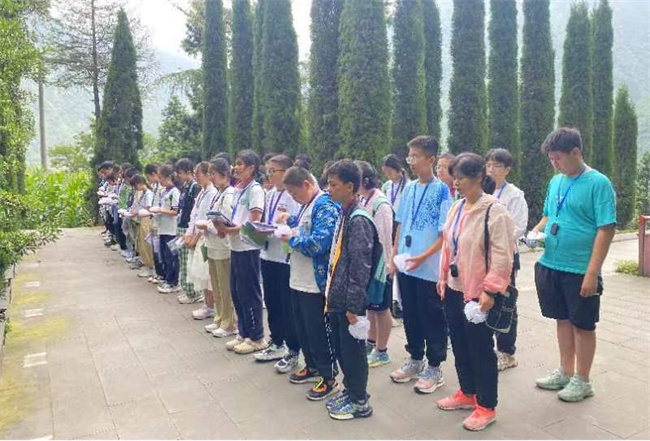 成都第三站是汶川地震紀念館。走進地震最嚴重的映秀鎮(zhèn)地震遺址,講解員哽咽的講解中,孩子們眼中含淚了解了那場驚天動地的災難也看見了祖國的強大、民族的團結和中華兒女不屈不撓、守望相助的精神。這里的一磚一瓦都訴說著那段艱難而又充滿希望的歲月。同學們在墓碑前朗誦《我有一個強大的祖國》,并把親手制作都白花進獻給在地震中失去的靈魂并在研學手冊上寫下自己對生命的感悟。