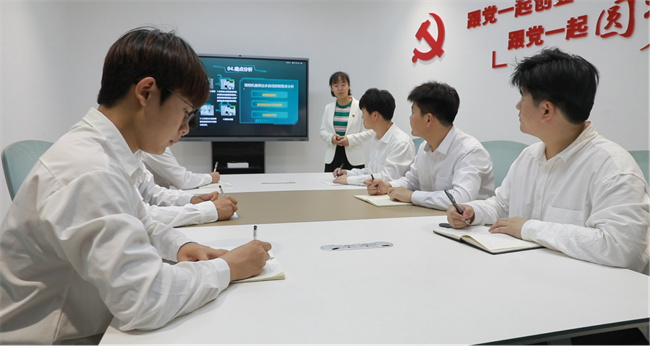在與指導教師及團隊成員分析行業(yè)痛點 桂浩(左一)