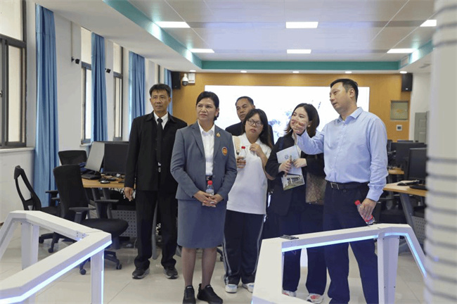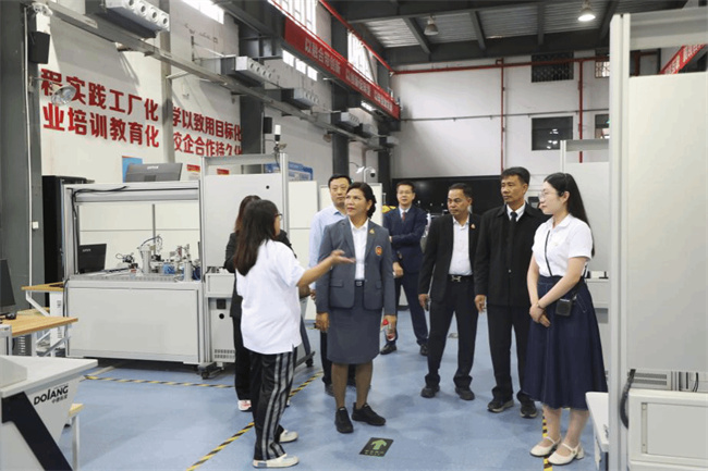 結業(yè)典禮后,泰國素叻他尼職業(yè)技術學院校長班查菈·樂薩瓦及其團隊參觀了學校實訓室和實習工廠。對學校設施完備的實習實訓環(huán)境,班查菈·樂薩瓦一行表示深感震撼,并表達了將更多泰國學生派送到學校進行學習與交流的愿望。