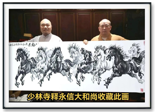 他的《奔馬圖》曾被人民大會堂、中國華僑歷史博物館、故宮博物院、徐悲鴻藝術(shù)館等大型博物館館藏。還有少林寺方丈釋永信、著名歌唱家于文華、著名演員杜旭東等知名人物也相繼收藏了他的畫作。
