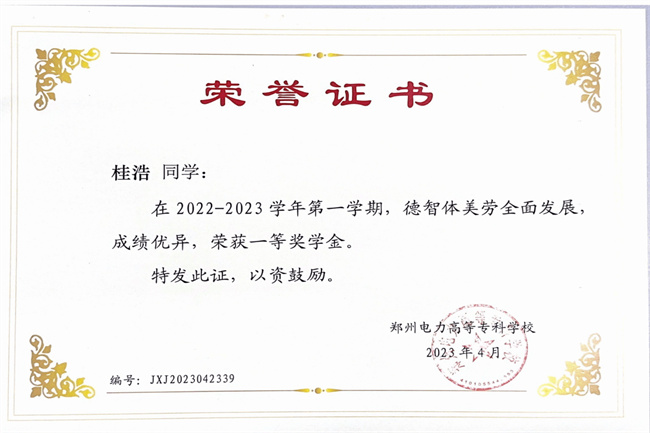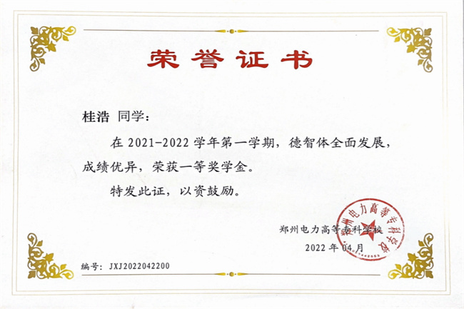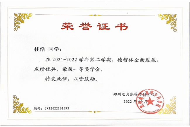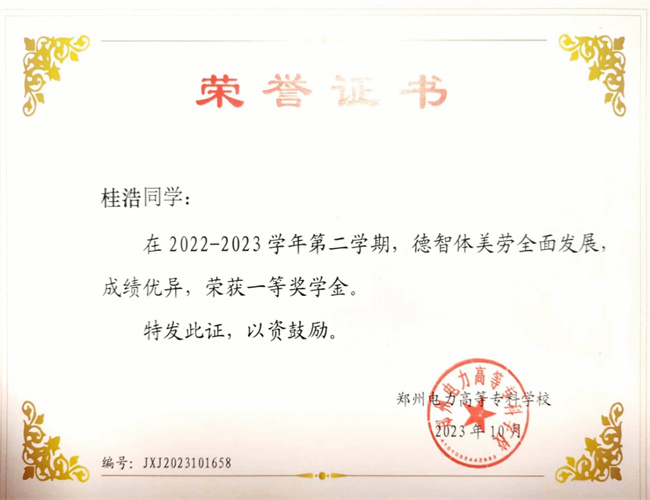 2021年,桂浩被錄取到鄭州電力高等?茖W(xué)校經(jīng)濟管理學(xué)院現(xiàn)代物流管理專業(yè)。他積極上進,勇于擔當,作為新時代的青年大學(xué)生,他立志成為能夠擔當民族復(fù)興大任的時代新人。在校期間,他不斷增強“四個意識”、堅定“四個自信”、做到“兩個維護”,將思想政治教育內(nèi)化于心,外化于行,做到張口能講,起身能干,坐下能謀,并多次獲得“優(yōu)秀團干”的榮譽稱號。于2023年6月光榮加入中國共產(chǎn)黨,成為一名中共預(yù)備黨員,積極參加學(xué)院黨支部標準化、規(guī)范化建設(shè),所在經(jīng)濟管理學(xué)院學(xué)生黨支部于2024年1月被評選為“省級黨建工作樣板黨支部”。