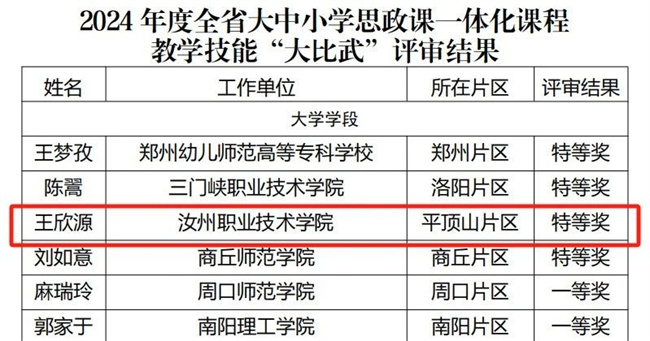 汝州職業(yè)技術(shù)學(xué)院自建院以來,把思政課作為落實立德樹人根本任務(wù)的關(guān)鍵課程來抓,著力建好建強思政課教師隊伍,認真培養(yǎng)鍛造思政課名師、名課題、名課堂,扎實推進思政課改革創(chuàng)新,著力打造有高度、有溫度、有效度的思政課堂,努力實現(xiàn)從“低頭課堂”到“抬頭課堂”再到“點頭課堂“的轉(zhuǎn)變,切實提升思政課教學(xué)的針對性和吸引力,取得了實實在在的成效。(汝州職業(yè)技術(shù)學(xué)院供稿)