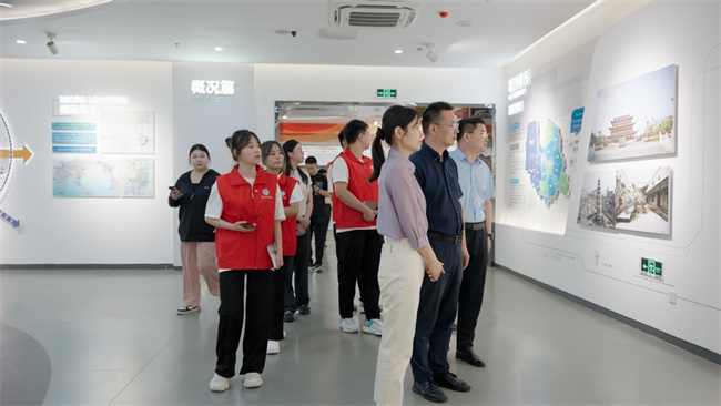 揭牌儀式結(jié)束后,與會領(lǐng)導(dǎo)和鄭州經(jīng)貿(mào)學(xué)院“黨團(tuán)隊(duì)一體化思想引領(lǐng)實(shí)踐團(tuán)”的學(xué)生一行參觀了尉氏縣城市展覽館。參觀結(jié)束后,張超對參加社會實(shí)踐的同學(xué)們表示慰問并提出三點(diǎn)希望:一要堅(jiān)持理論與實(shí)踐相結(jié)合,在實(shí)踐中學(xué)習(xí)、在學(xué)習(xí)中實(shí)踐,在調(diào)研中思考、在思考中調(diào)研;二要真正深入基層一線,走村入戶、吃苦受累、求真學(xué)問、練真本領(lǐng);三要講政治、守紀(jì)律、重安全、求實(shí)效,確保社會實(shí)踐活動取得實(shí)實(shí)在在的成績。未來幾天,實(shí)踐團(tuán)隊(duì)將通過老黨員訪談、座談交流、參觀文史紀(jì)念館、理論宣講、愛心送教等多種形式開展實(shí)踐活動。(鄭州經(jīng)貿(mào)學(xué)院供稿)