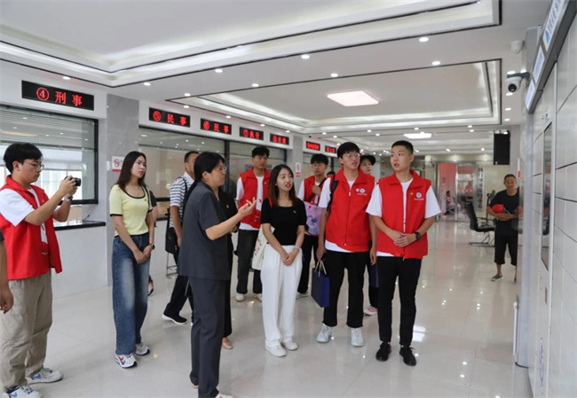 座談交流踐初心,共探法治明方向。7月10日下午,實踐團在法院工作人員的帶領下“沉浸式”參觀了川匯區(qū)人民法院,“零距離”接觸并了解法院工作,感受法律威嚴和司法公正。實踐團與法院工作人員開展座談交流,深入了解基層法治現(xiàn)狀,聽取了他們對下一步工作開展的建議,為合理有效地開展下鄉(xiāng)普法活動奠定了扎實的基礎。