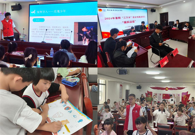 法治教育防“未然”,學法課堂護成長。7月12日,實踐團成員對村內(nèi)留守兒童開展普法課堂,結合身邊真實案例講授法律知識,同時創(chuàng)新形式,帶領兒童共同繪制法治主題手抄報、一同學習民法典手勢舞、一起參演模擬法庭,以通俗易懂、孩子們喜聞樂見的方式幫助當?shù)貎和瘜W習法律知識,讓法治意識在每一個兒童心中生根發(fā)芽,用法治力量護航未成年人的健康成長。