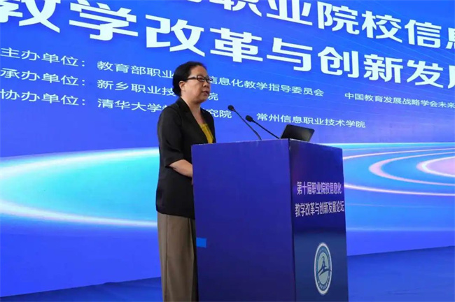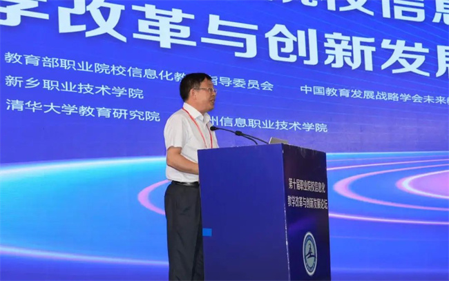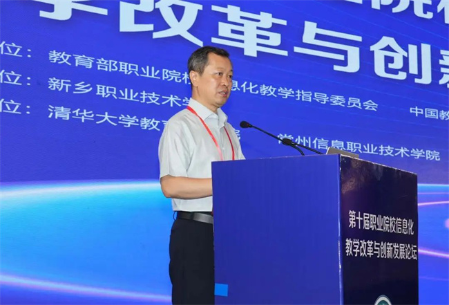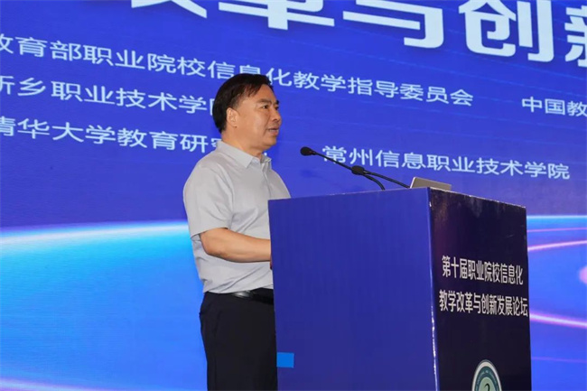 中新河南網(wǎng)7月19日電( 閆紅瑩 羅靜 ) 7月17日至18日,以“推進人智協(xié)同,共促數(shù)字職教”為主題的第十屆職業(yè)院校信息化教學(xué)改革與創(chuàng)新發(fā)展論壇在新鄉(xiāng)舉行。本次論壇由教育部職業(yè)院校信息化教學(xué)指導(dǎo)委員會、中國教育發(fā)展戰(zhàn)略學(xué)會未來教育專業(yè)委員會主辦,新鄉(xiāng)職業(yè)技術(shù)學(xué)院承辦,清華大學(xué)教育研究院、常州信息職業(yè)技術(shù)學(xué)院協(xié)辦。