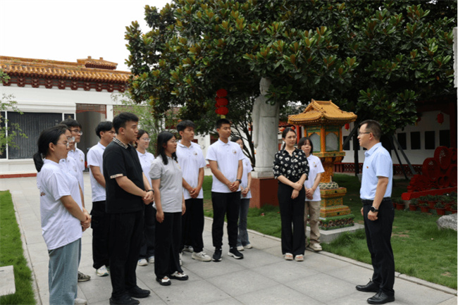 尚真書院黨委書記、執(zhí)行院長(zhǎng)李志軒在醫(yī)圣祠給團(tuán)隊(duì)成員上黨課