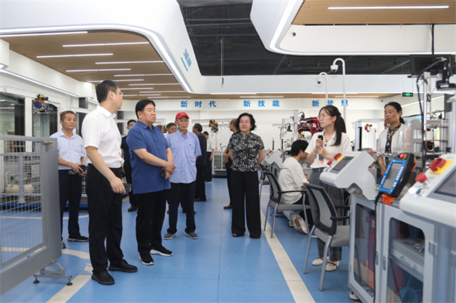 座談會前,校領導陪同老領導們參觀了學校汽車實訓中心、工業(yè)機器人工程技術中心、超硬材料及制品工程技術中心、華為ICT產(chǎn)教融合基地、虛擬現(xiàn)實工程技術中心、生命健康研究院等國家和省市實訓科研平臺。