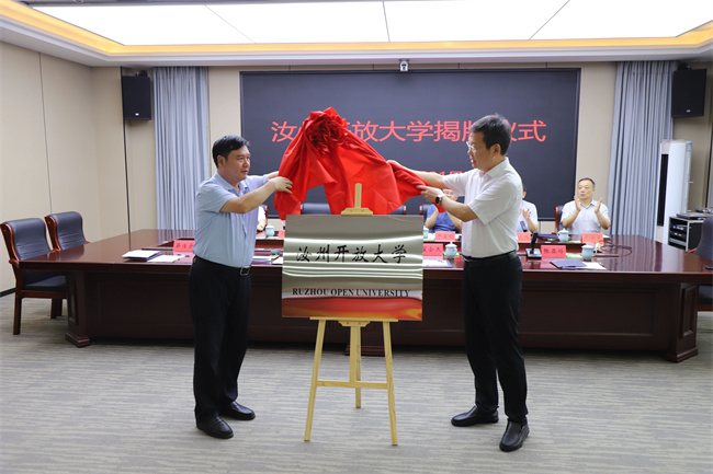 儀式上,魯書(shū)喜和劉國(guó)朝共同為汝州開(kāi)放大學(xué)揭牌。
