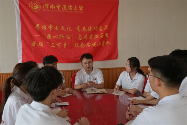 “把支部建立在社會實踐團隊上”是河南中醫(yī)藥大學在今年社會實踐中發(fā)揮組織育人的創(chuàng)新舉措,社會實踐團隊出發(fā)以后,思政教師任臨時黨支部書記,學生黨員擔任支部委員,支部號召全體黨員和入黨積極分子發(fā)揮模范帶頭作用,通過紅色尋訪、主題黨課、專題講座等方式深入推動黨的二十大精神進鄉(xiāng)村進頭腦。通過黨建引領,進一步帶動學生在實踐中深入學習,提升專業(yè)水平,鍛煉吃苦耐勞、團結協(xié)作的精神。
