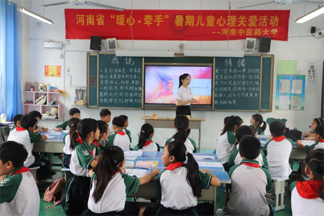 該活動是河南中醫(yī)藥大學攜手河南省婦聯(lián)開展的暑期社會心理服務(wù)項目,同時入選共青團中央維護青少年權(quán)益部、中國青年報社開展的2024年全國大學生暑期“三下鄉(xiāng)”社會實踐之“心理健康青春行”專項活動;顒佑珊幽鲜「咝9鶑┫夹睦斫】到逃麕煿ぷ魇覉F隊成員指導,帶領(lǐng)心理社團和心理委員一行16人組成“青”心筑夢實踐團,開展青少年心理健康服務(wù)活動。據(jù)悉,今年通過“心科普”“心服務(wù)”“心調(diào)研”等方式,運用醫(yī)學專業(yè)知識與心理健康知識,開展了一系列豐富多彩、寓教于樂的實踐活動,旨在通過多元化教學手段,促進兒童身心健康,傳承弘揚中華優(yōu)秀傳統(tǒng)文化,同時通過個案訪談、心理咨詢等方式,輔導改善困境兒童的心理及情感問題,為有效開展關(guān)愛服務(wù)工作提供依據(jù),助力兒童心理健康教育優(yōu)質(zhì)均衡發(fā)展,營造“人人關(guān)注未成年心理健康”的良好社會氛圍。