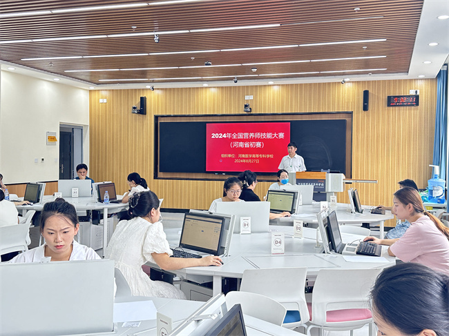 初賽內(nèi)容參照《公共營養(yǎng)師國家職業(yè)技能標準》三級、二級的職業(yè)標準和技能要求,結(jié)合新時代行業(yè)、企業(yè)發(fā)展情況,采用理論與技能相結(jié)合的形式,以閉卷人機交互(無紙化)方式進行,全面考察了參賽選手的專業(yè)知識與技能的掌握程度。經(jīng)過現(xiàn)場角逐,河南醫(yī)學(xué)高等?茖W(xué)校2名參賽選手將和其他8名參賽選手代表河南賽區(qū)參加下半年舉行的全國大賽決賽。