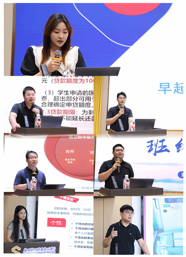 團委李田文老師以《如何培養(yǎng)一支能干的學生干部隊伍》為題,講解如何培養(yǎng)一支既有能力又具責任感的學生干部隊伍;學生資助中心胡洋老師對學生資助工作進行了詳細解讀;職業(yè)生涯規(guī)劃教師朱含針對學生就業(yè)指導進行專題培訓;輔導員郝志鵬、張曉鵬、葉海月、劉延、張煒倩分別以《輔導員一日常規(guī)的落實與規(guī)范》《如何在活動中提升班級凝聚力》《危機事件的應急處理》《軍訓當中遇到的困難及應對措施》《如何開好每一場班會》為題分享工作經(jīng)驗與典型案例,為參訓學員“精準賦能”,指導參訓學員在實踐中鍛煉,在鍛煉中學習,在學習中提升,在提升中成長。